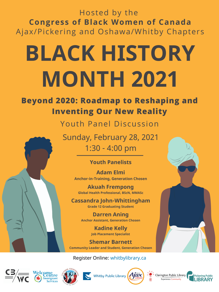 • Together with Oshawa Whitby Chapter, and in partnership with Durham Public Libraries, hosted a Virtual Panel Discussion on Combatting Anti-Black Racism in Education, Health, Economy, and the Justice System