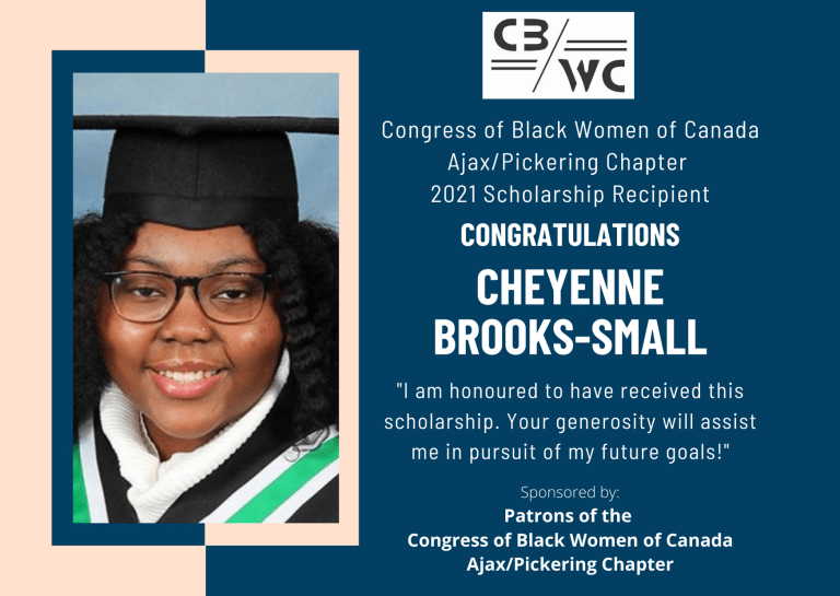 Cheyenne Brooks-Small, a graduate of Pickering High School, is pursuing a Bachelor of Arts degree in Social Sciences and Humanities with a concentration in Public Law at the University of Toronto.