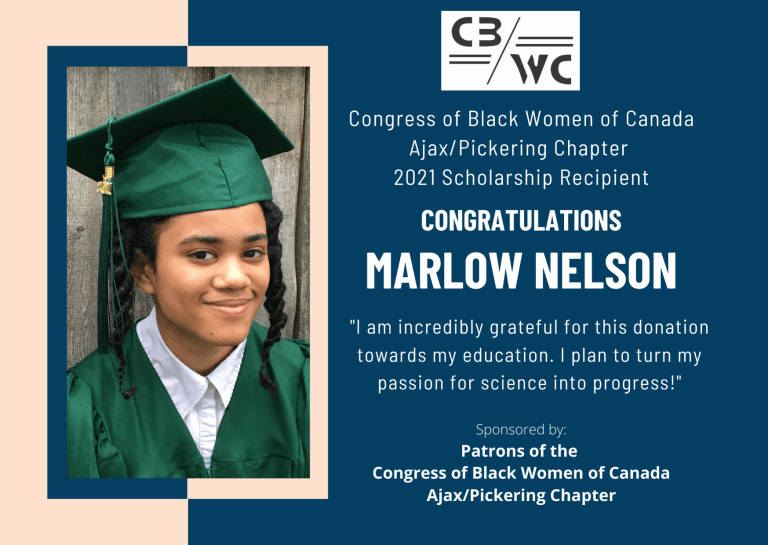 Marlow Nelson, a graduate of Pickering High School, is majoring in Biochemistry at the University of Waterloo.